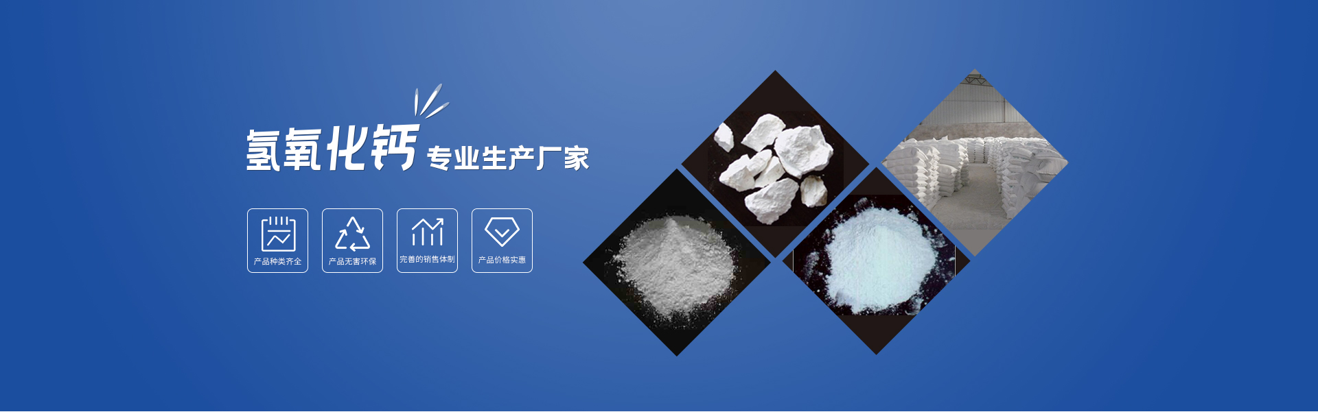 生產各種規格氧化鈣、氫氧化鈣和重鈣,產品純度高,質量優,色相柔,價格合理,化學成分穩定,廣泛應用于冶金溶劑、精細化工、污水處理、電廠煙氣脫硫除酸、建筑涂料、造紙、填料制革、橡膠塑料填充助劑、垃圾焚燒、金屬工廠酸堿中和、漂白、干燥、石油潤滑油、飼料、石材助制劑、石膏板嵌縫凝結劑、收斂劑、食品及藥品等領域。
